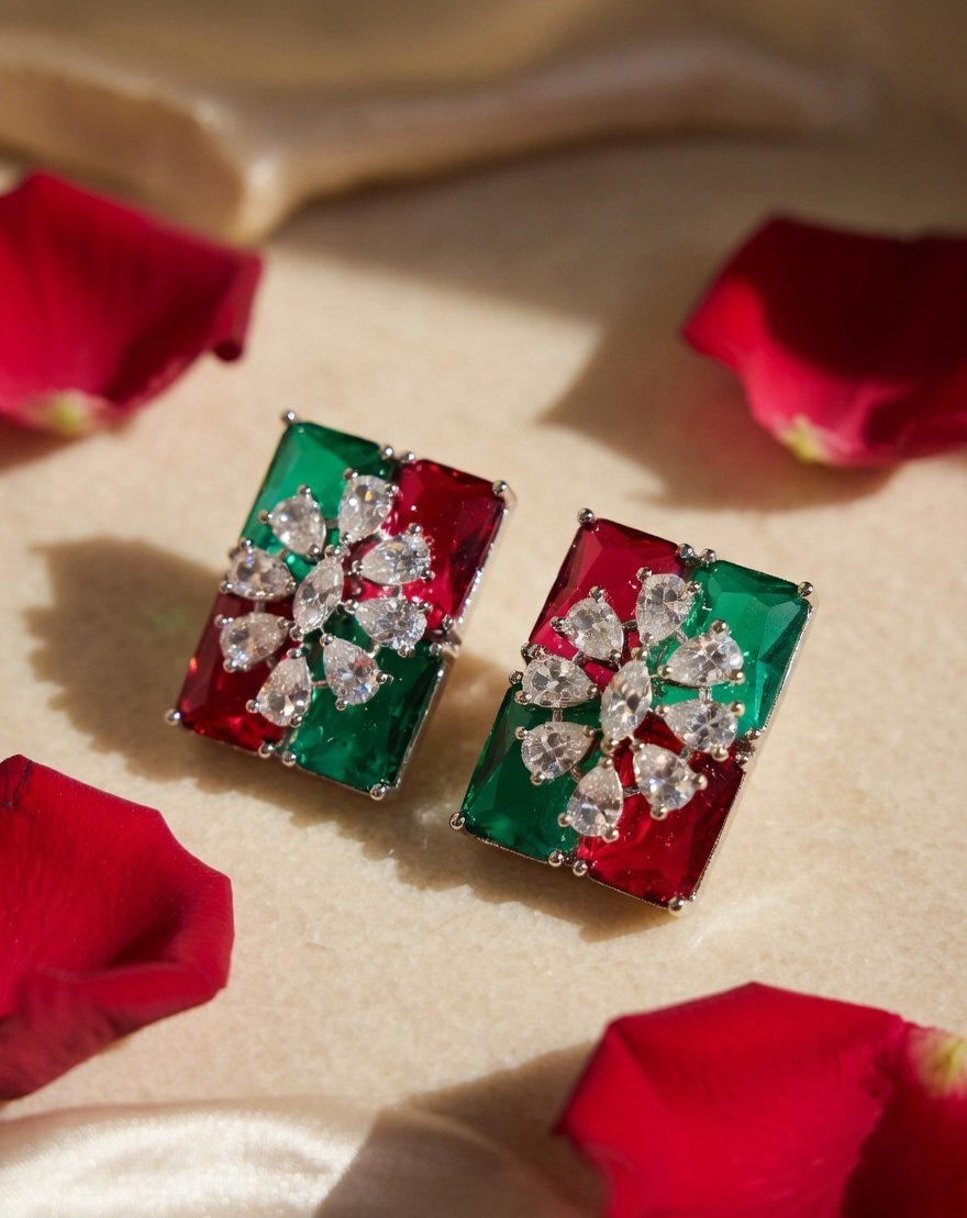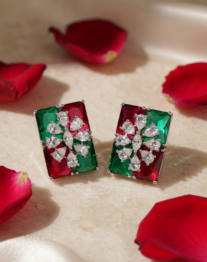 Enticing Red & Green Chic Studs