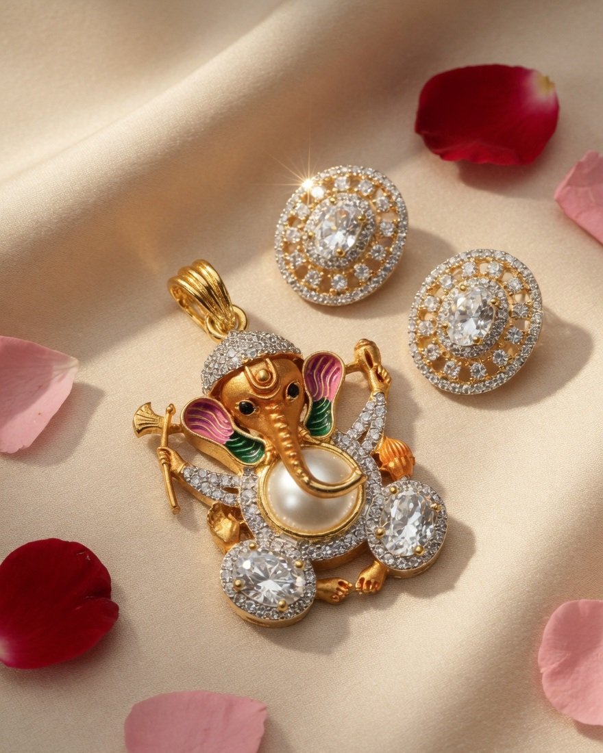 Designer Ganpati Idol Pendant Necklace with CZ Stones