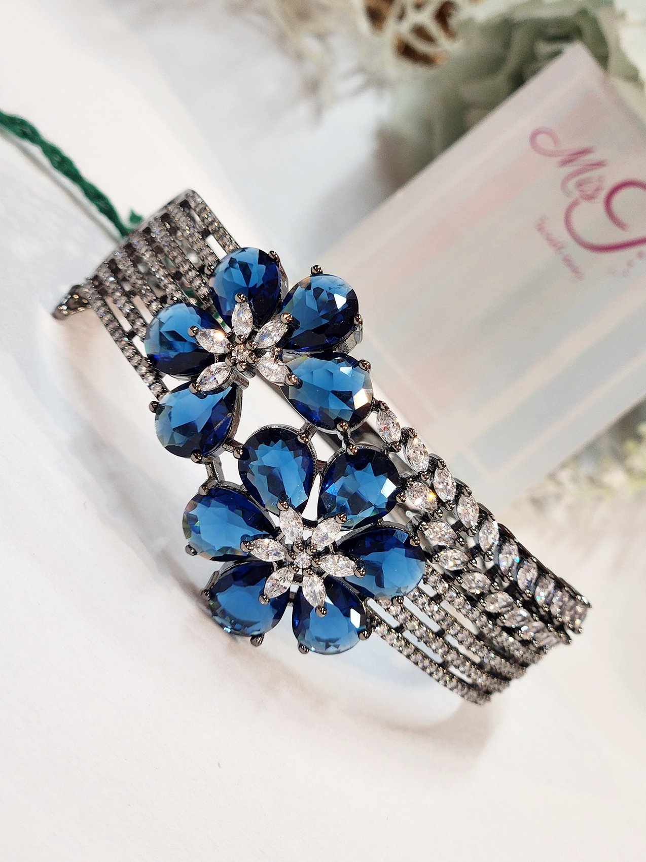 Flower Frenzy Sapphire Blue Bracelet- Black Rhodium Finish