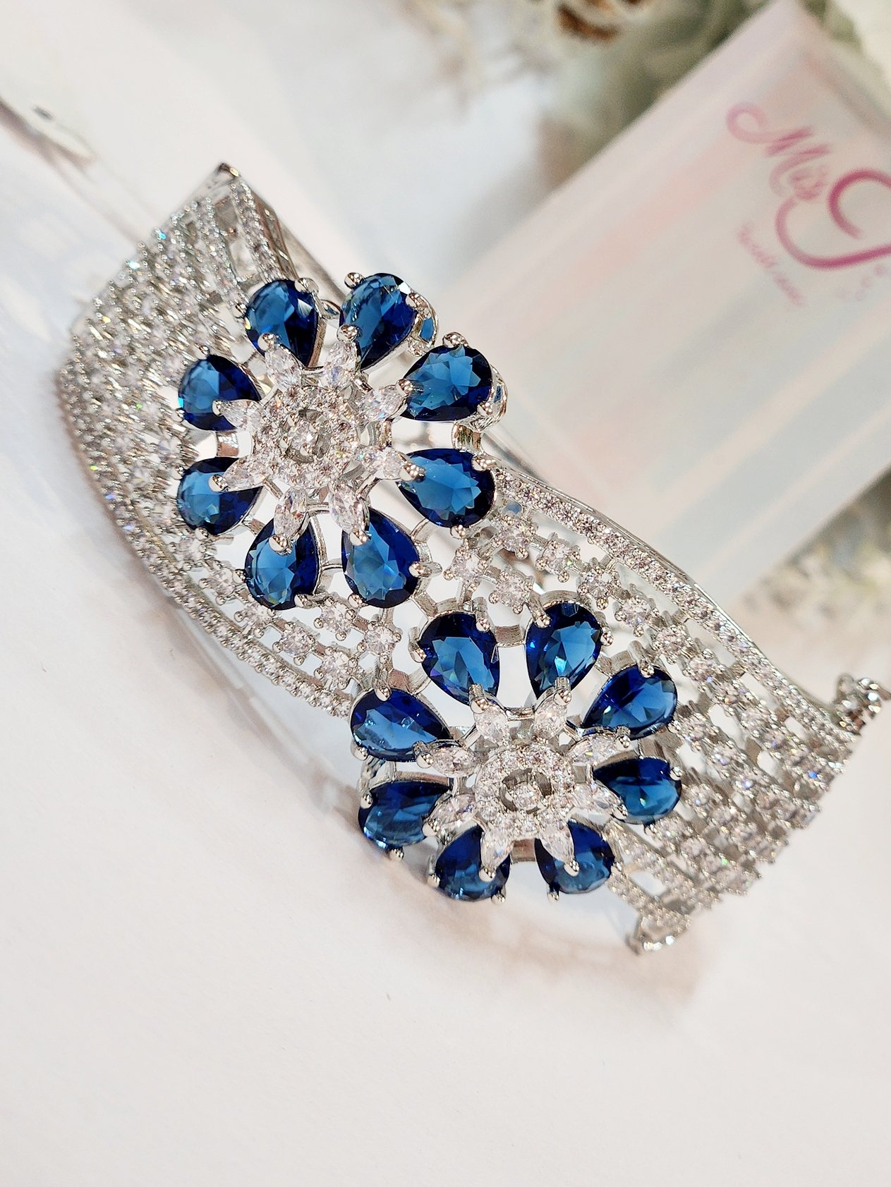 Flower Frenzy Sapphire Blue Bracelet- Platinum Finish