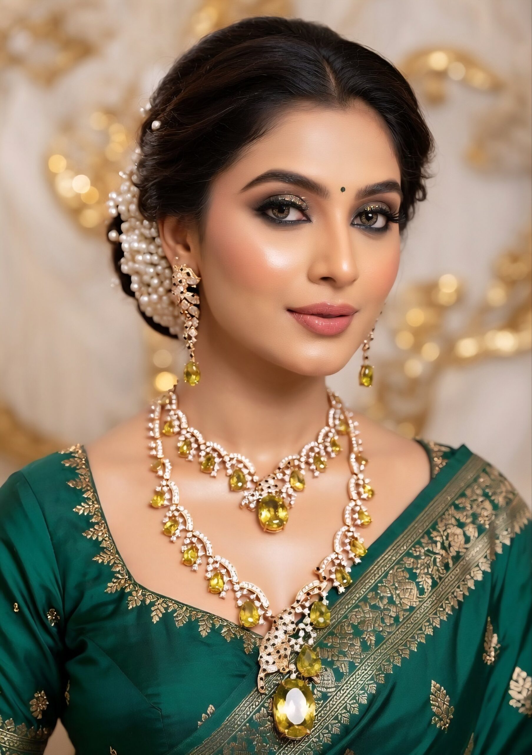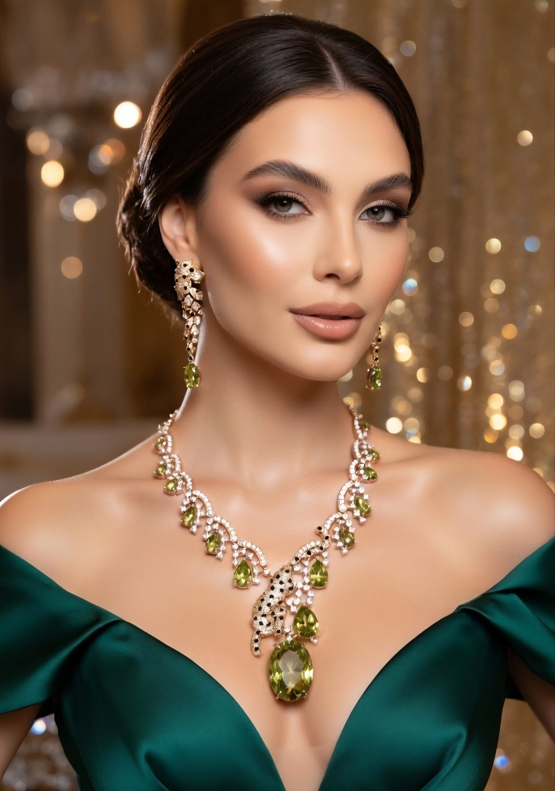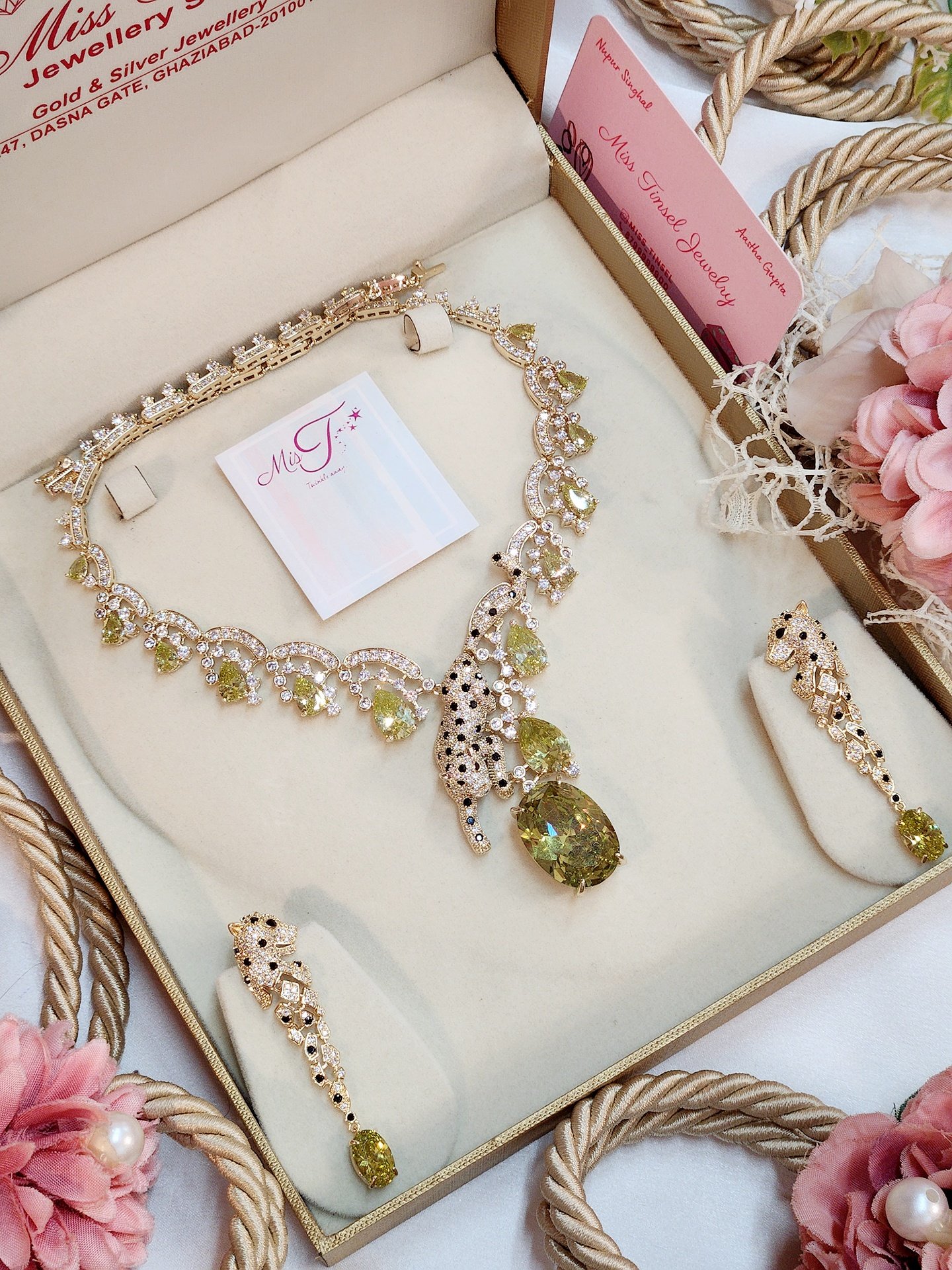 Olive Green Panther Neck Set