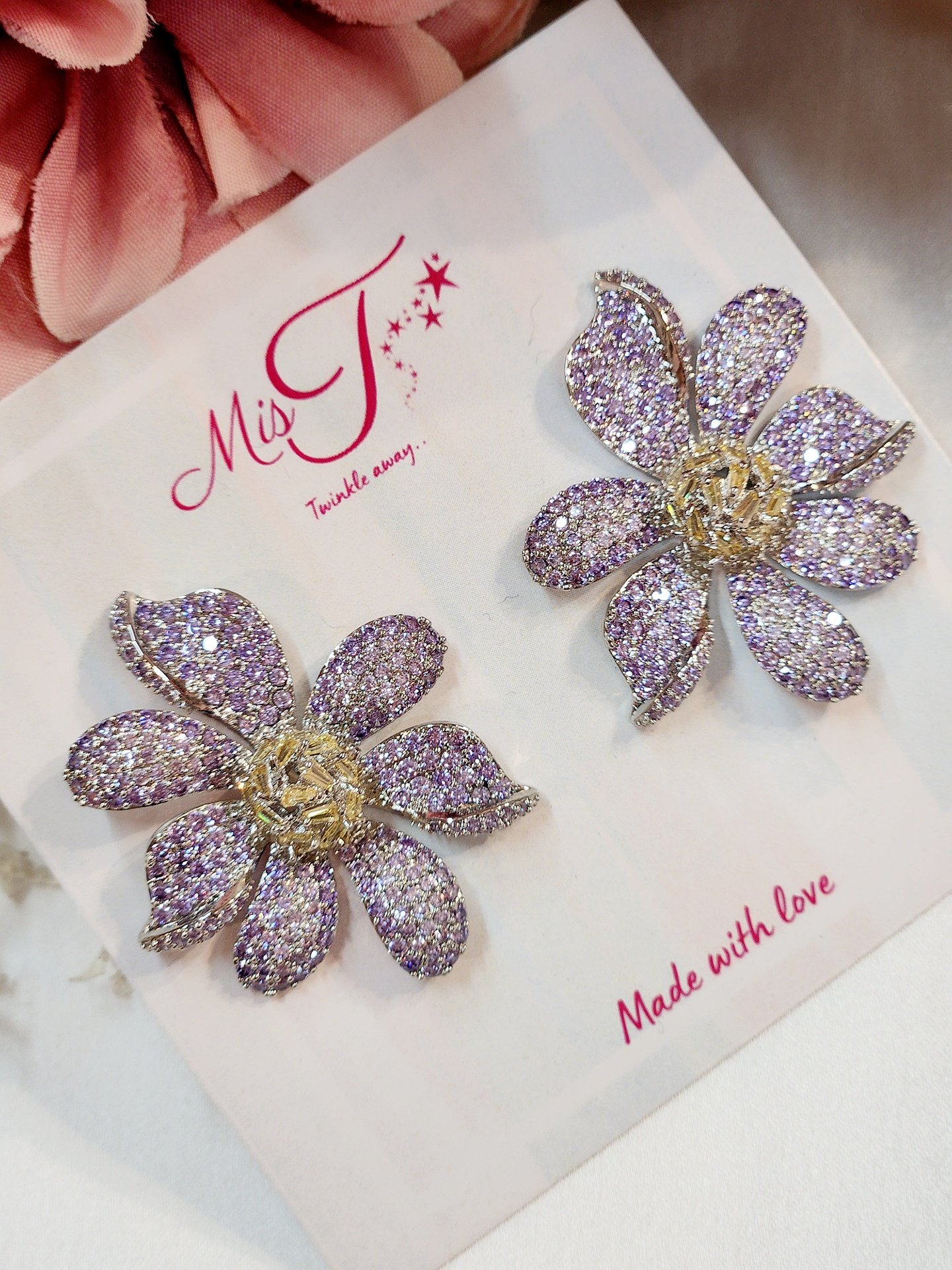 Signature Floral Lavender Platinum Finish Italian Setting Zirconia Earrings