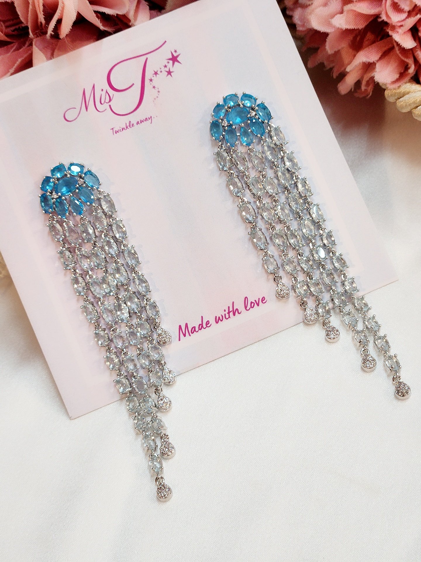 Royal Azure Cz Fringe Earrings