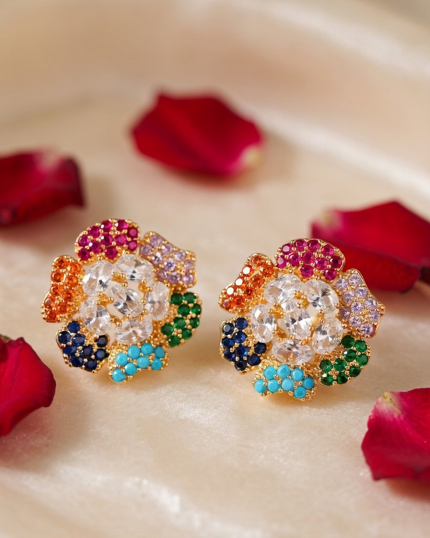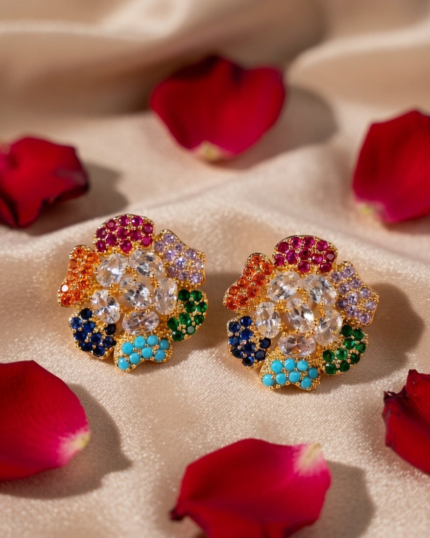 Anti Tarnish Floral Multi Stud Earrings – Elegant Minimal Jewelry