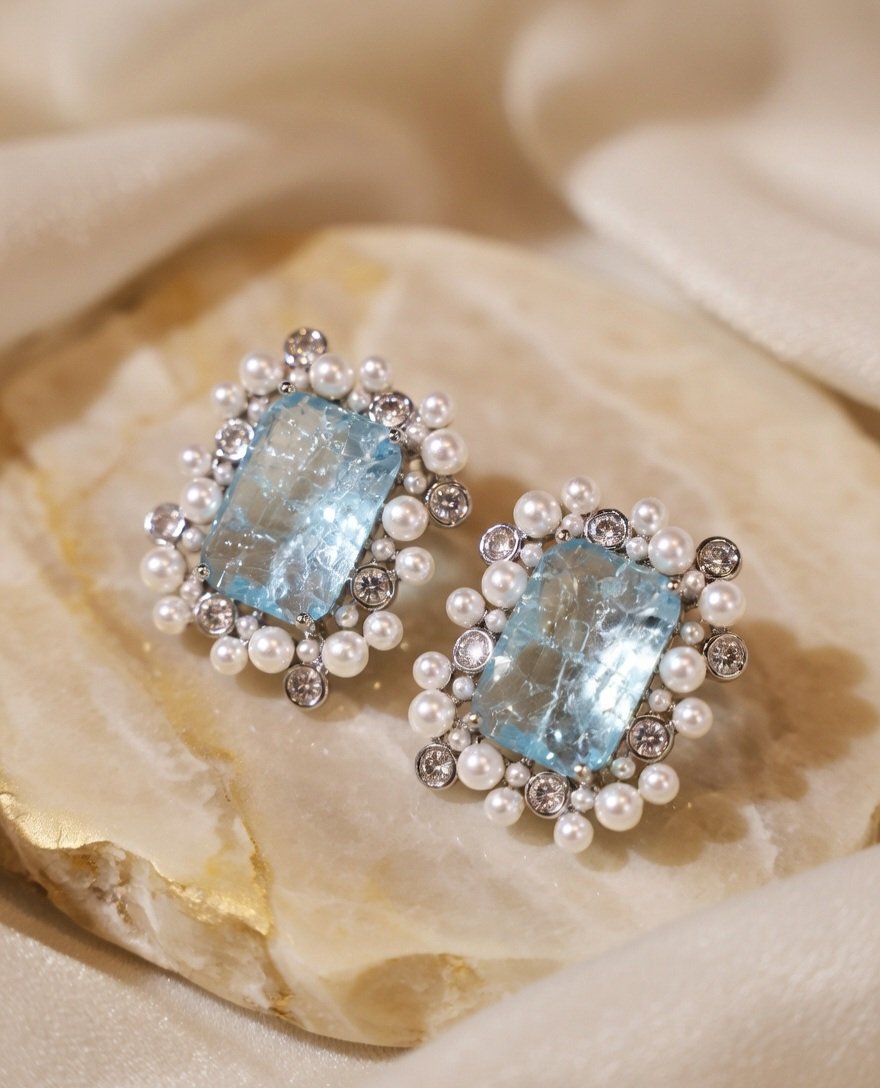 Doublet Blue Pearl Frame Studs