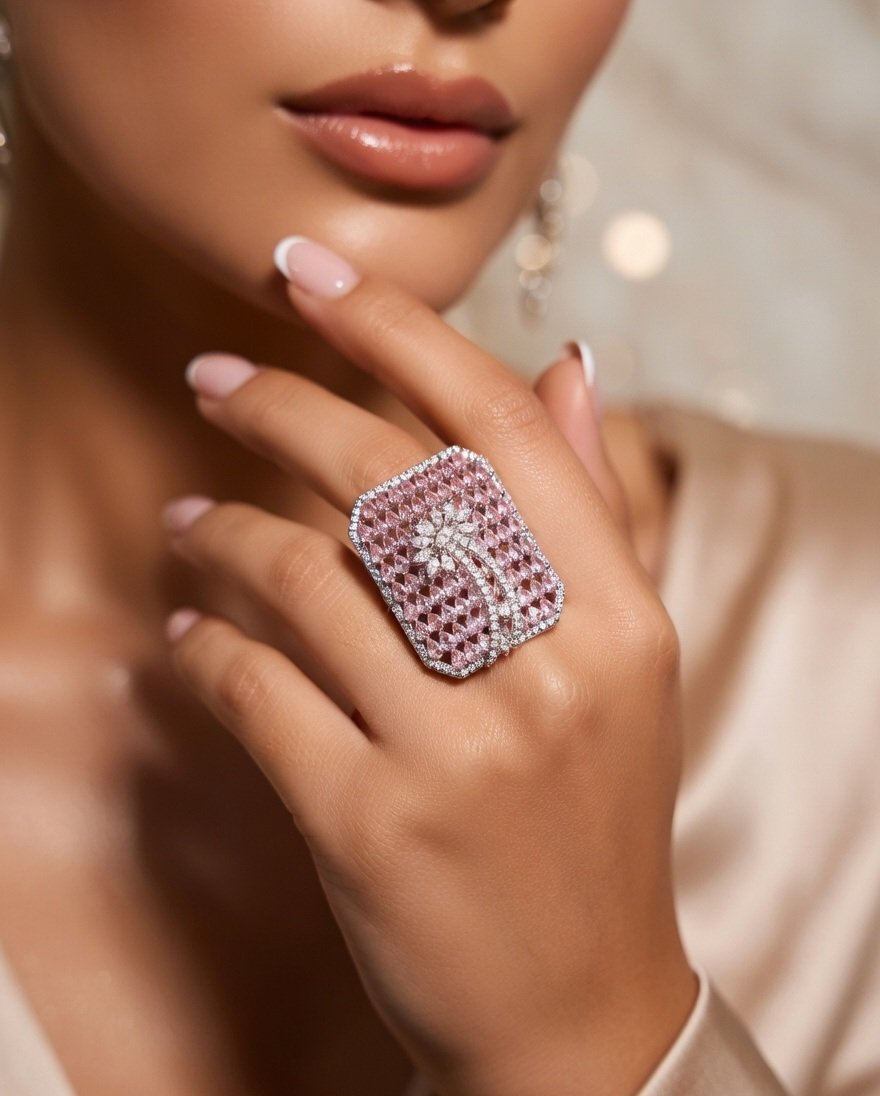 Bold Blush Pink CZ Cocktail Ring Adjustable