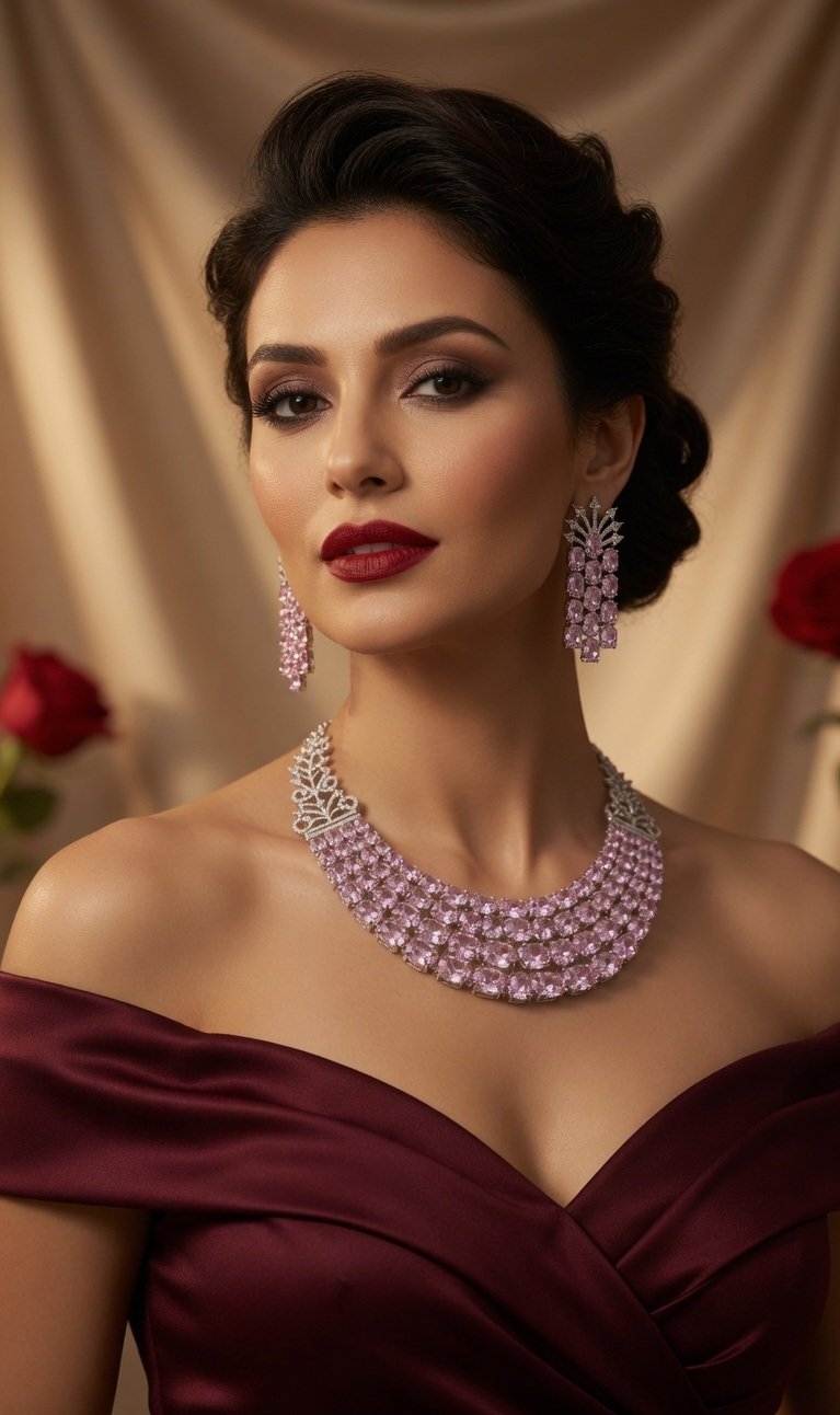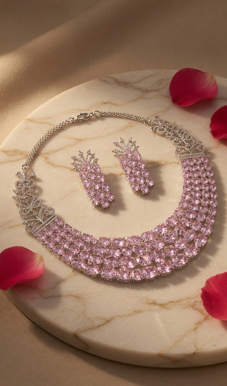Aurora Pink Cz Bridal Necklace Set for Women – Luxury Wedding Jewelry