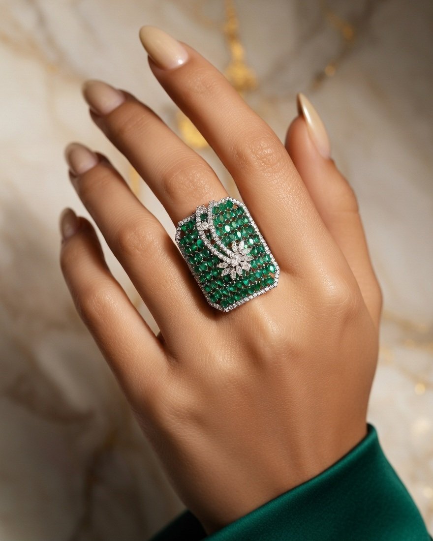 Bold Emerald Green CZ Cocktail Ring Adjustable