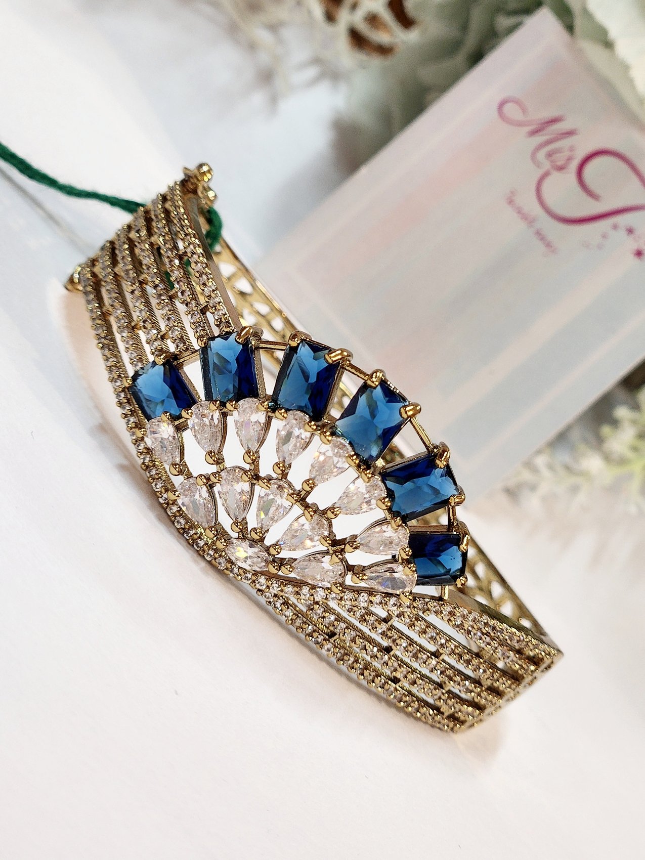 Noor Luxe Sapphire Blue kada – Antique Golden Finish