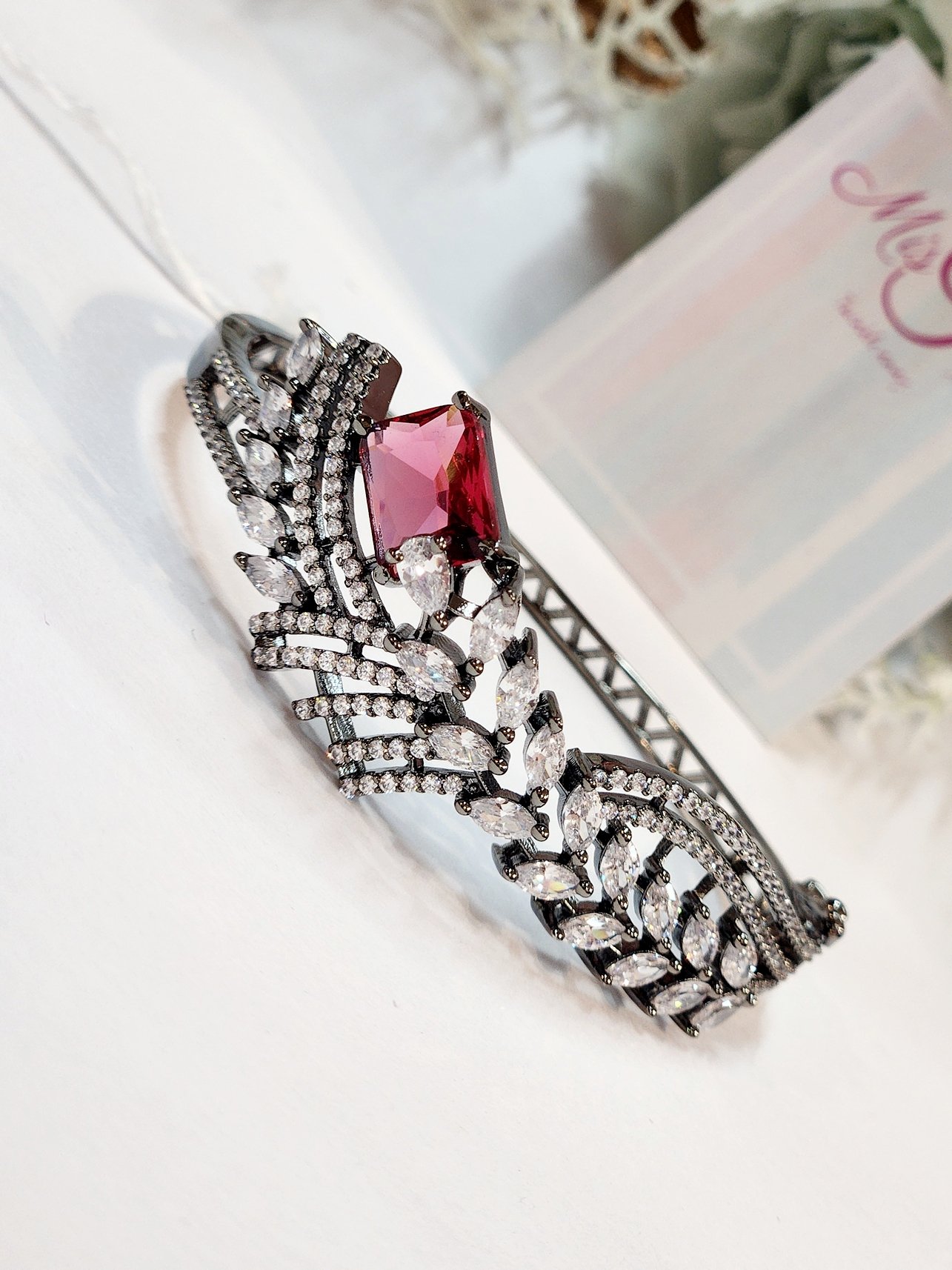 Sparkle Sprout Wine Red Bracelet- Black Rhodium Finish